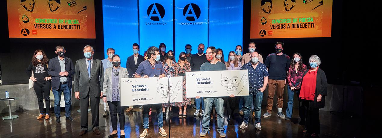Todos ellos rindieron su homenaje a Benedetti con poemas con los que se acercaron al público presencial y digital. Precisamente el director general de Casa de América, Antonio Pérez-Hernández, recordó que si algo caracteriza a Benedetti es su cercanía con la gente corriente: hacer que el lector se sintiera aludido, y no eludido. Marta Rivera de la Cruz, consejera de cultura y turismo de la Comunidad de Madrid, y también escritora, se dirigió a los finalistas para decirles que, "en estos tiempos terribles que nos ha tocado vivir, todo lo que estamos viviendo, por malo que sea, os servirá para escribir".
